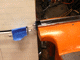 at the two yellow arrows on the left, at the volume control, and the video cables at the arrows