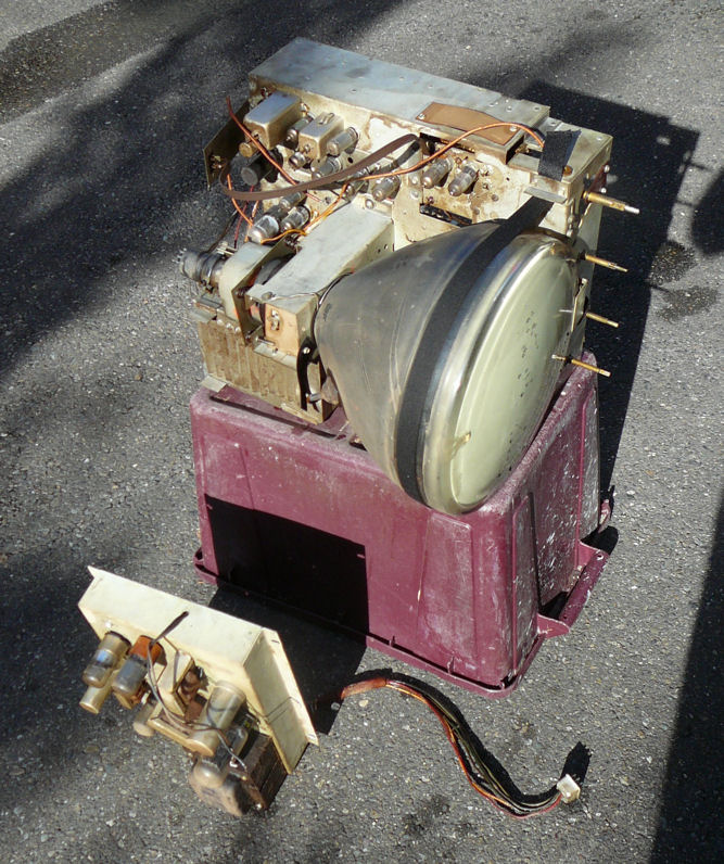 Here is the TV as I found it, complete (except for a back cover) and very dirty.