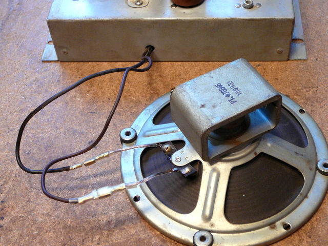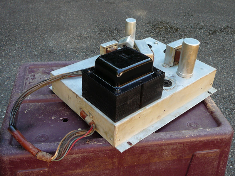 The four-tube power/audio amplifier chassis is mounted in the base of the cabinet: