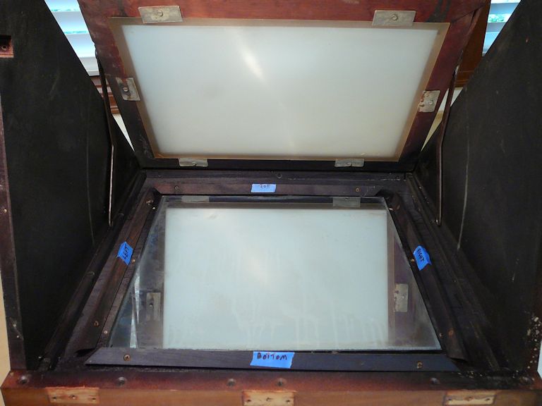 mirrors onto a translucent viewing screen. We'll learn more about the complex optics