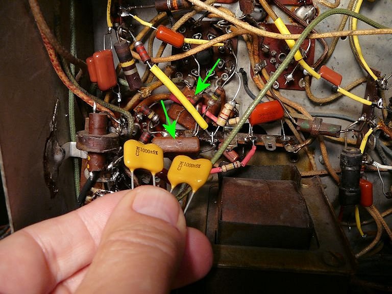I hooked up the chassis in the cabinet and used a capacitor substitution box to experiment with adding