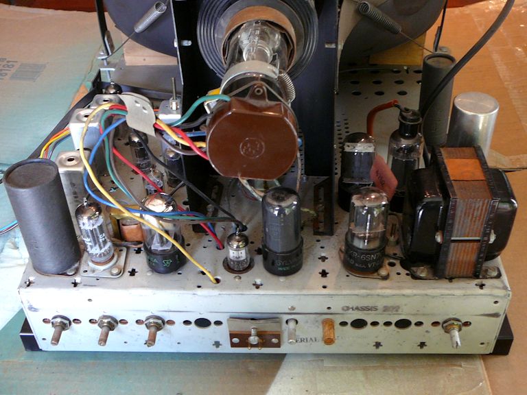 On the not-so-promising side, I saw a brightener hanging from the picture tube socket.