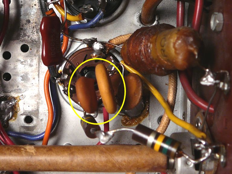 around, I found two 82pf caps rated for 5KV. Wiring one of them between pins 3 and 5 of