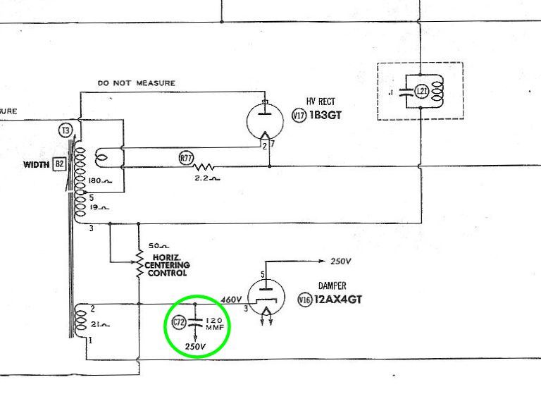 The original is a 120K resistor (R71) that connects to the horizontal oscillator tube's plate.
