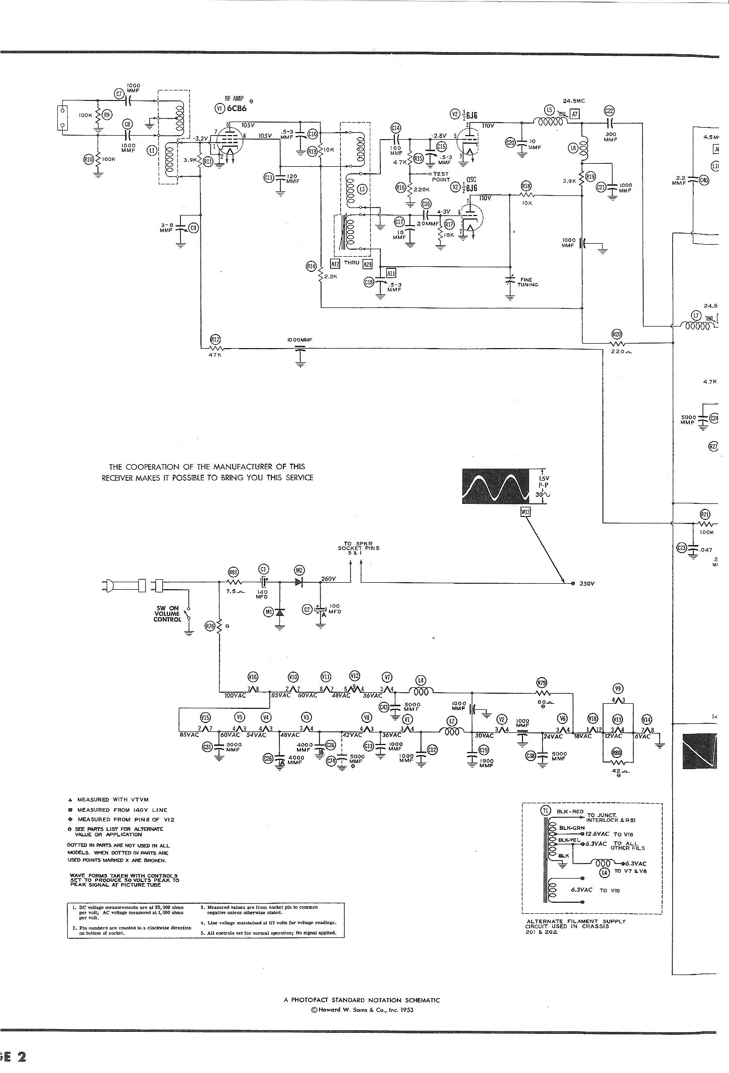source. In practice, C72 is wired between the two pins and pin 5 is connected to the 250-volt line.)
