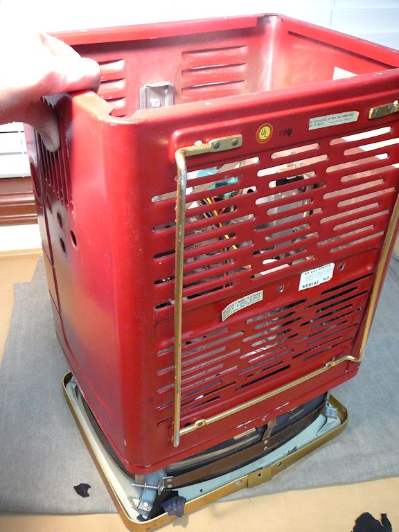 To remove the cabinet, you detach the gold trim piece from the front and lay the TV face-down on a soft pad.