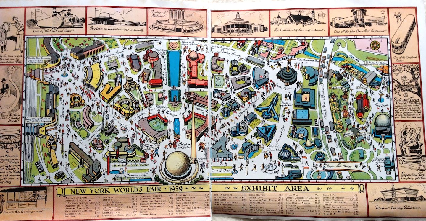 left and bottom show the edges of the Trylon and Perisphere, which protected them