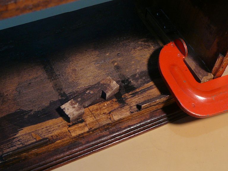The next photo shows the cabinet after regluing. Now, I was back where I should