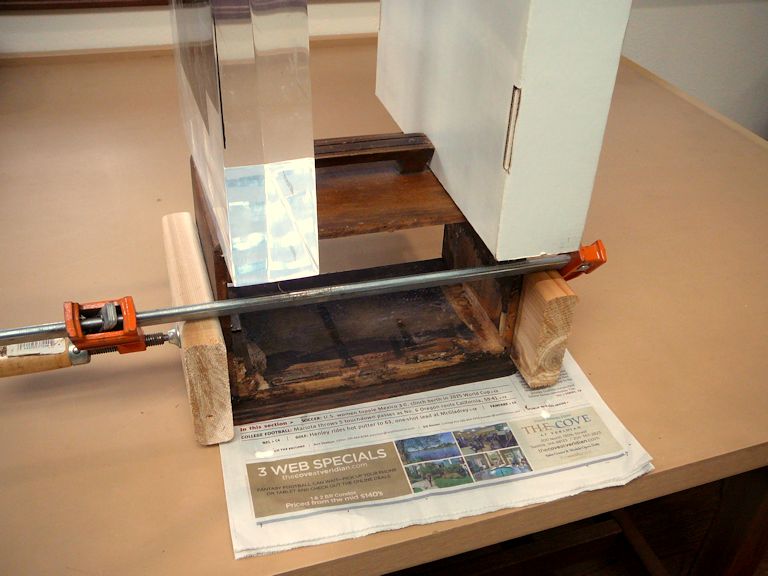 I cleaned the old glue residue from the joints and glued the cabinet back together,