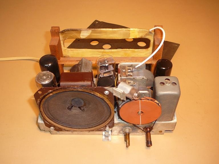 This is a basic five-tube radio with a series-string (transformerless) power supply.
