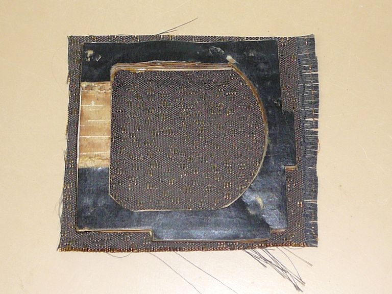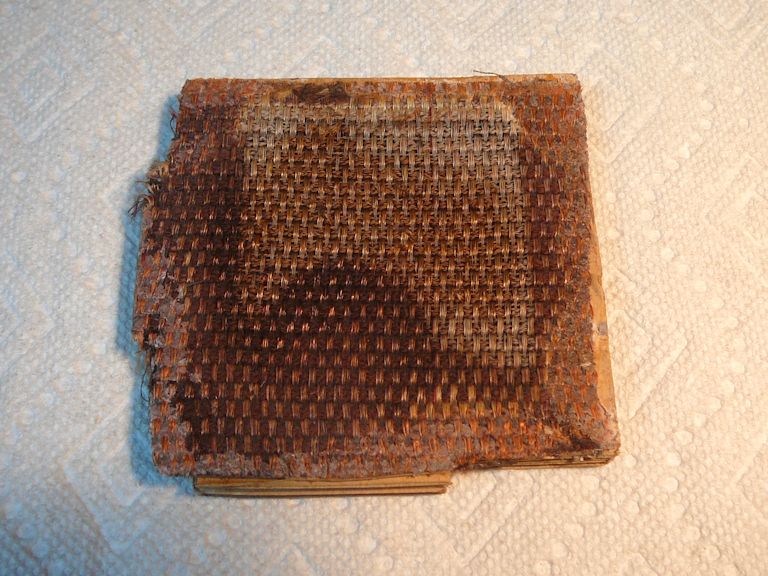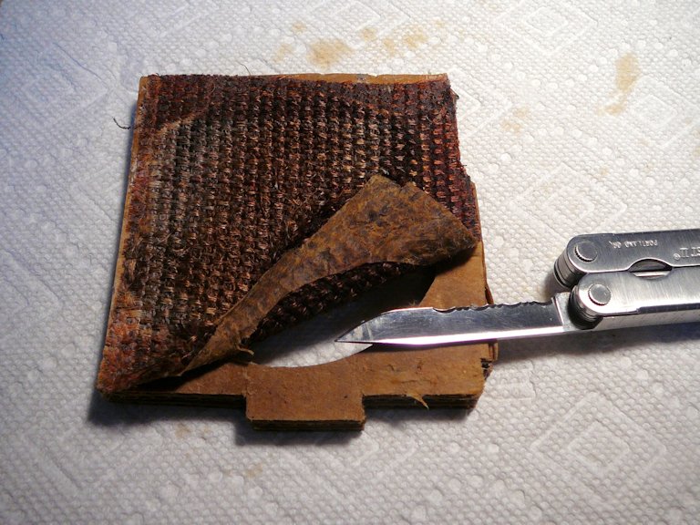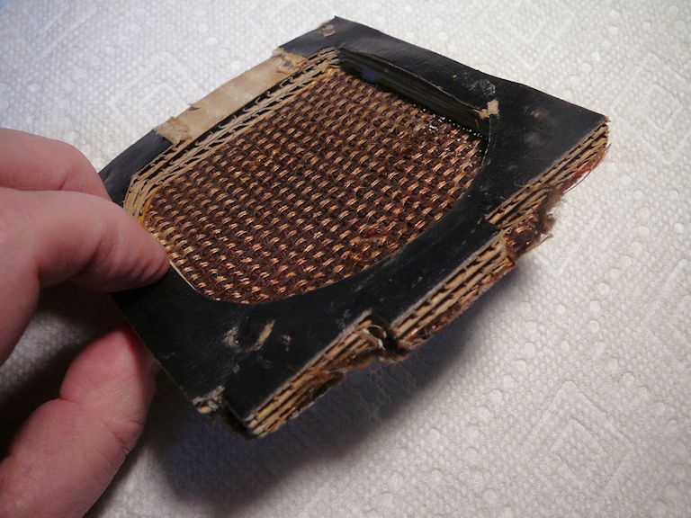 The grille cloth was originally glued between a piece of corrugated cardboard and