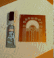 I sprayed some light coats of brown toning lacquer on the box and panel until they