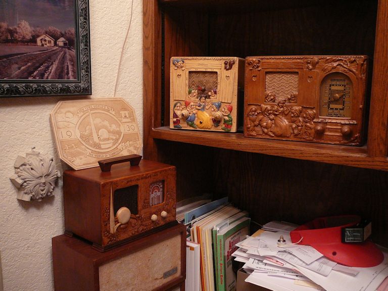 I own two other radios with figural repwood panels, both Emerson Snow White sets. Here is my