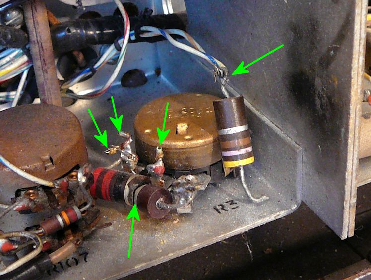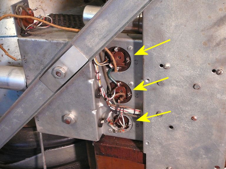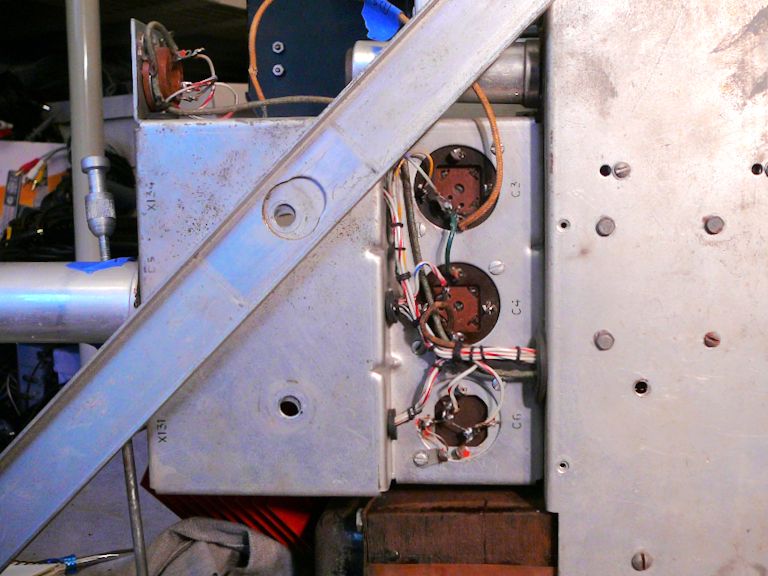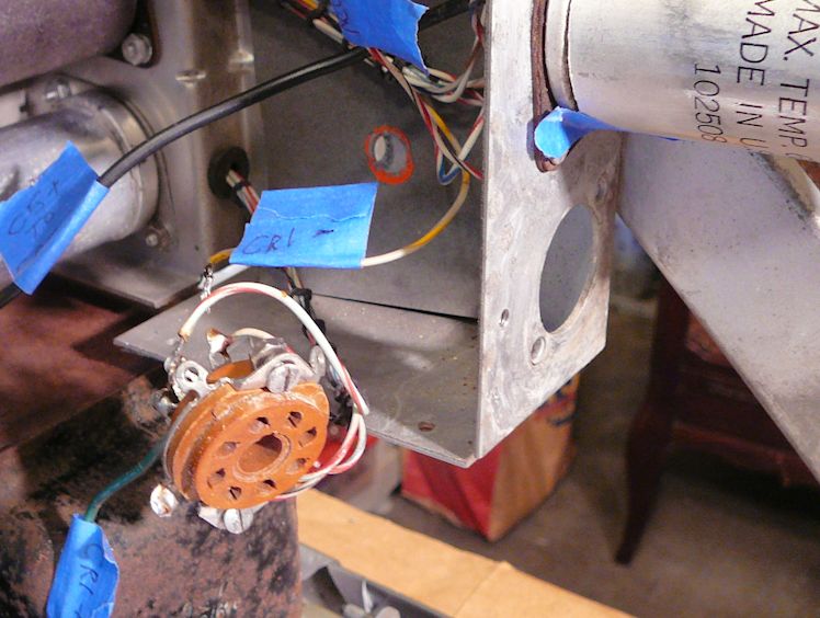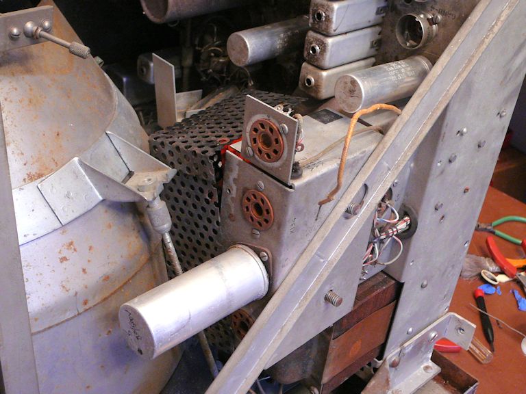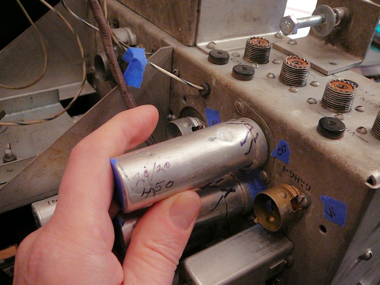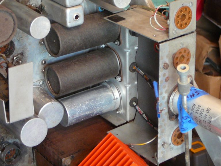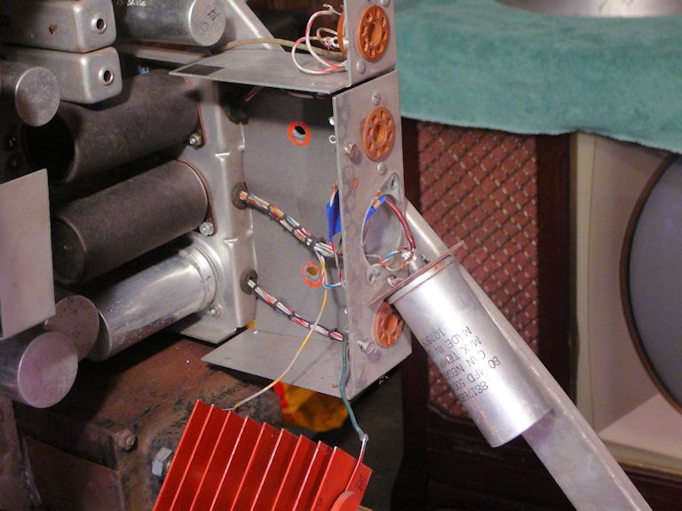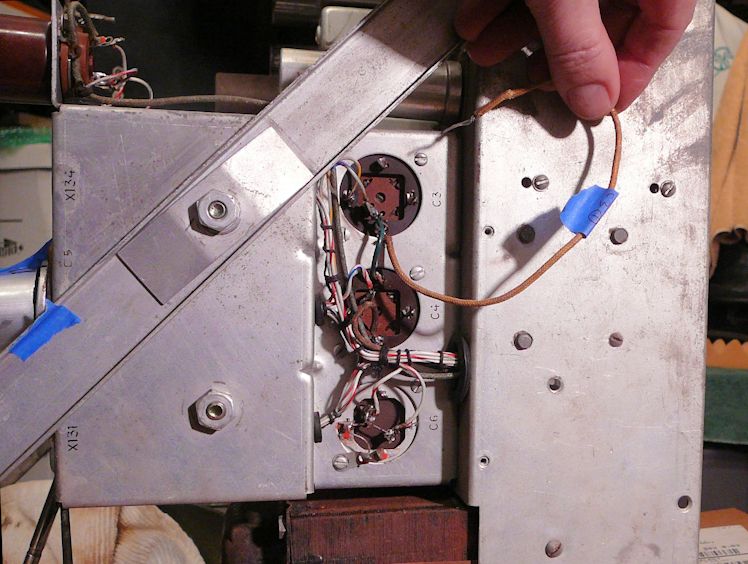 Mounted on the cage frame is the can electrolytic capacitor C5. Here, I have loosened