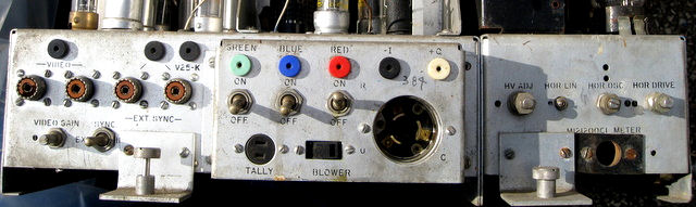 In the first photo, a TM-10 stands atop the KHQ studio control