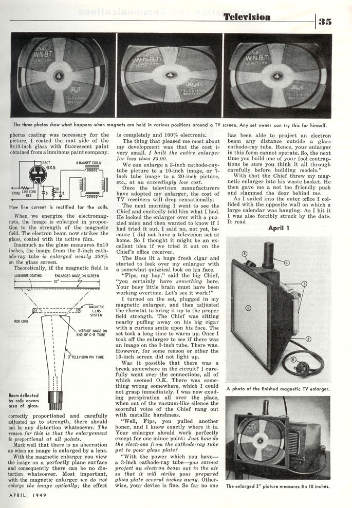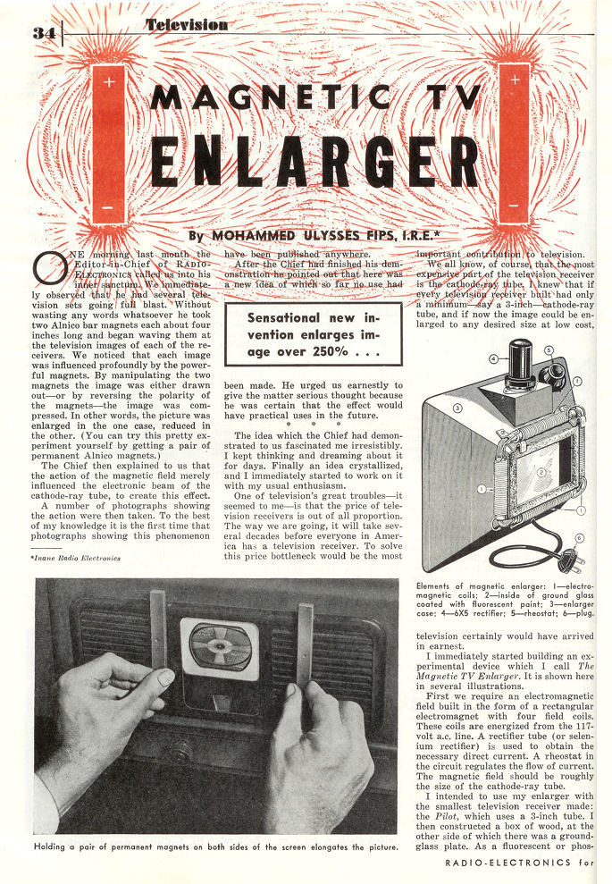 entitled Magnetic TV Enlarger. The first illustration