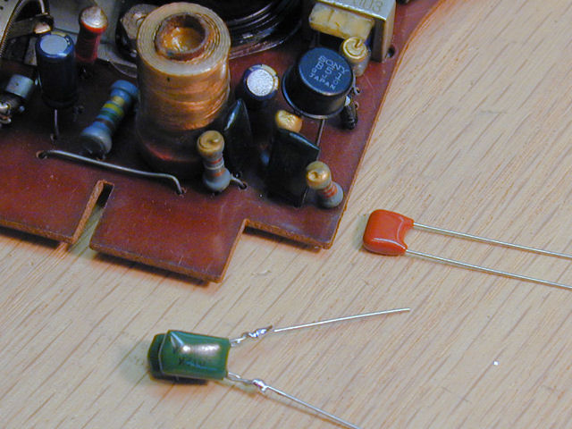 slightly higher value, 3.3mfd/16v, hoping that this would work.