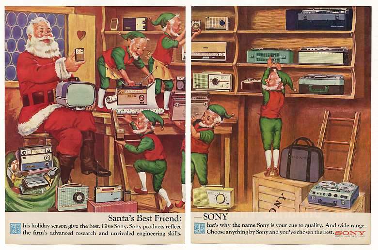magazine ad, Santa holds an 8-301W on his lap while elves busily stock the shelves