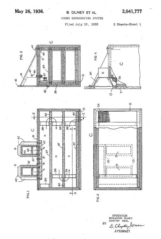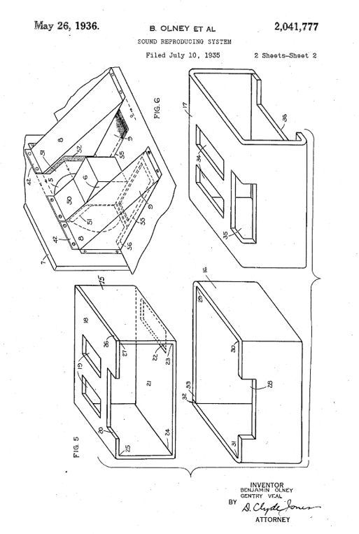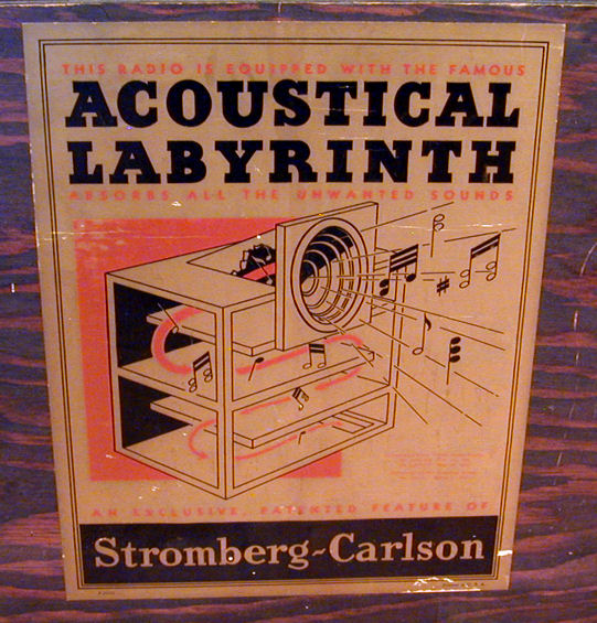 The rear view shows the chassis and the "Acoustical Labyrinth" speaker