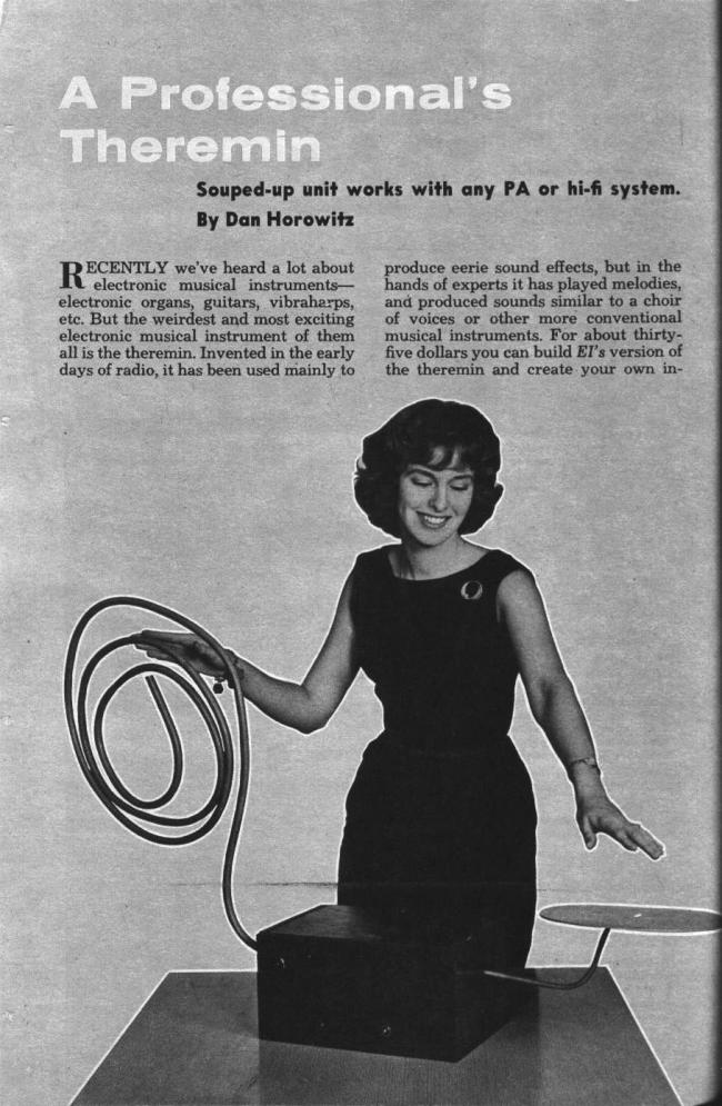 The cover shows a lissome lady playing a Theremin. Unlike all other instruments,