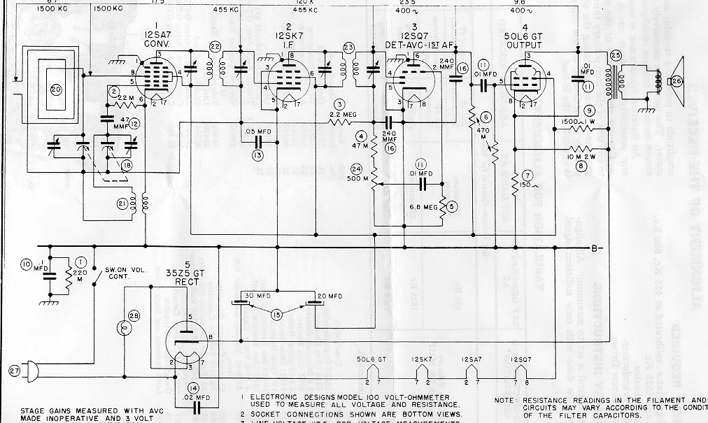 path. Starting at pin 7 of the 50L6GT tube, I again checked the wire leading