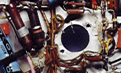 The most practical cure for an arcing socket is to replace it with a new one. The next photo shows the 6SQ7's circuitry before the replacement.
