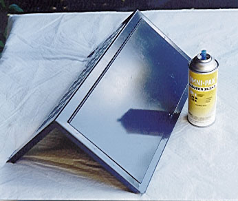 The bottom and back/top pieces were easy to paint, since I could spray the whole piece at once. The next photo shows the back/top piece after applying the first of a few coats of paint.