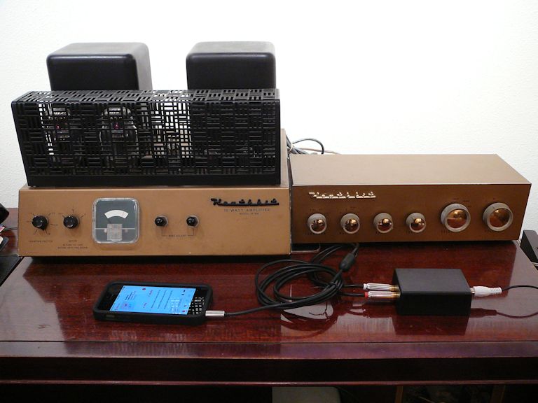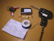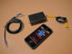 The photo also shows my iPhone and two cables for connecting the adaptor. One cable goes
