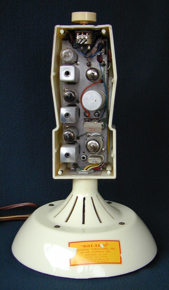 The Mike-Radio uses five tubes, of types 12AV6, 12BA6, 12BA6, 19EA8, and 50C5. It is a conventional