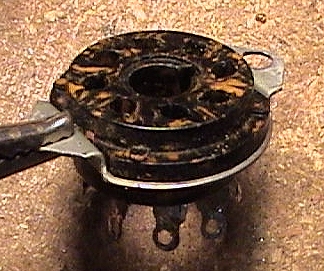 shows the deteriorated socket. Look at the orange-brown trails burned into the original black phenolic