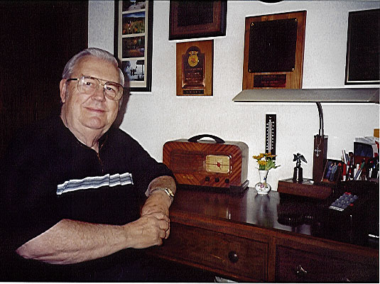 Here's a shot of my Dad in his den, with the newly restored Philco