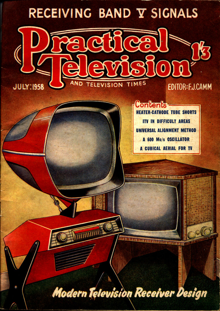 The 1958 line also included the Holiday, the same TV in a low wooden tabletop cabinet.