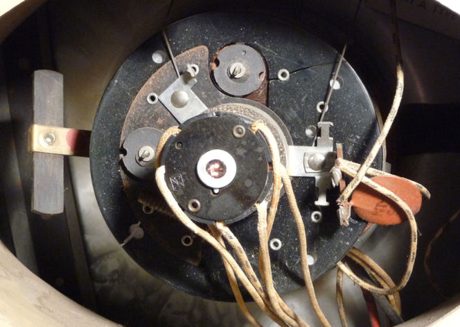 The designers turned the chassis sideways to fit the slim upright cabinet. Here's