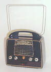 cabinet is formed of dark, heavy Bakelite, accented with