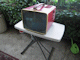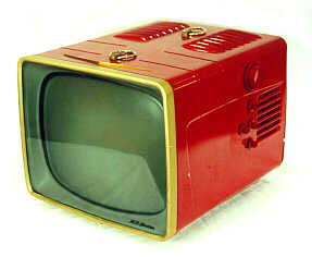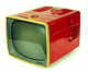 What great colors for a TV—lipstick red with gold trim! This 14-inch black-and-white set caught my eye during a trip to northern Washington. I call it my '57 Chevy TV, a real design classic.