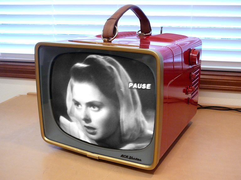 Since I originally created this page, this little TV became a TV star of sorts. With my permission, a company called Educational Video Network, Inc. (1401 19th St, Huntsville, TX 77340) used this and several other of my images in an educational video called "The Chip That Changed the World." The video chronicles the development of modern integrated circuits. In one segment, the very first image shown in this page is morphed into a modern, big-screen TV—pretty cool!