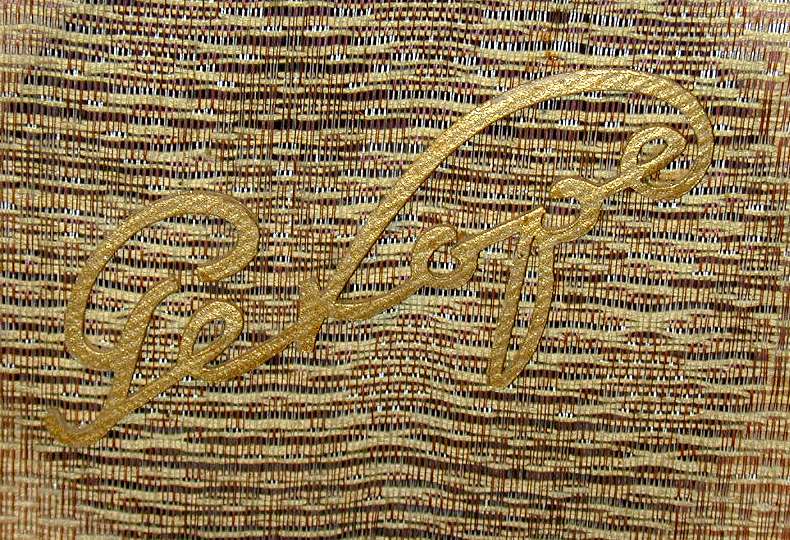 doubles as the speaker grille cloth. The gold-colored trim pieces on each side of the panel are thin metal,