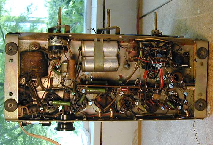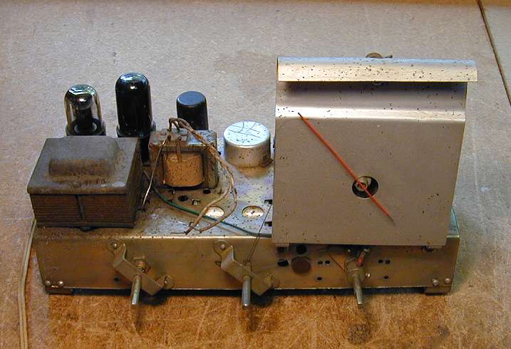 pointer is simply a piece of wire dipped in red paint—and the circuitry under the chassis has an almost