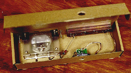 The prototype uses a slider-type variable potentiometer. It is housed in a small cardboard box