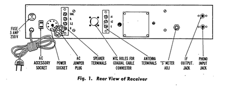 Note: The receiver will not operate from an AC source unless the AC JUMPER PLUG is inserted in the POWER SOCKET at the rear of the receiver. (See Fig. 1.)