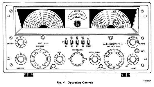 For broadcast reception, the BAND width control is normally set at "5 KC" or "10 KC" the positions affording broad selectivity. Selectivity may be progressively increased by turning the BAND width control to the positions marked "2.5 KC" "1.25 KC", ".5 KC", and ".25 KC". For reception of the crowded amateur and shortwave bands, it is generally advisable to sacrifice fidelity for greater selectivity, since the added selectivity reduces both adjacent-channel interference and background noise by attenuating the higher audio frequencies, Too much selectivity on AM signals, however, will attenuate the high audio frequencies to such an extent that the signal may become unintelligible as a result of excessive side-bandcutting. When receiving CW signals, the sharpest selectivity position may be used without the loss of intelligibility experienced in AM reception.